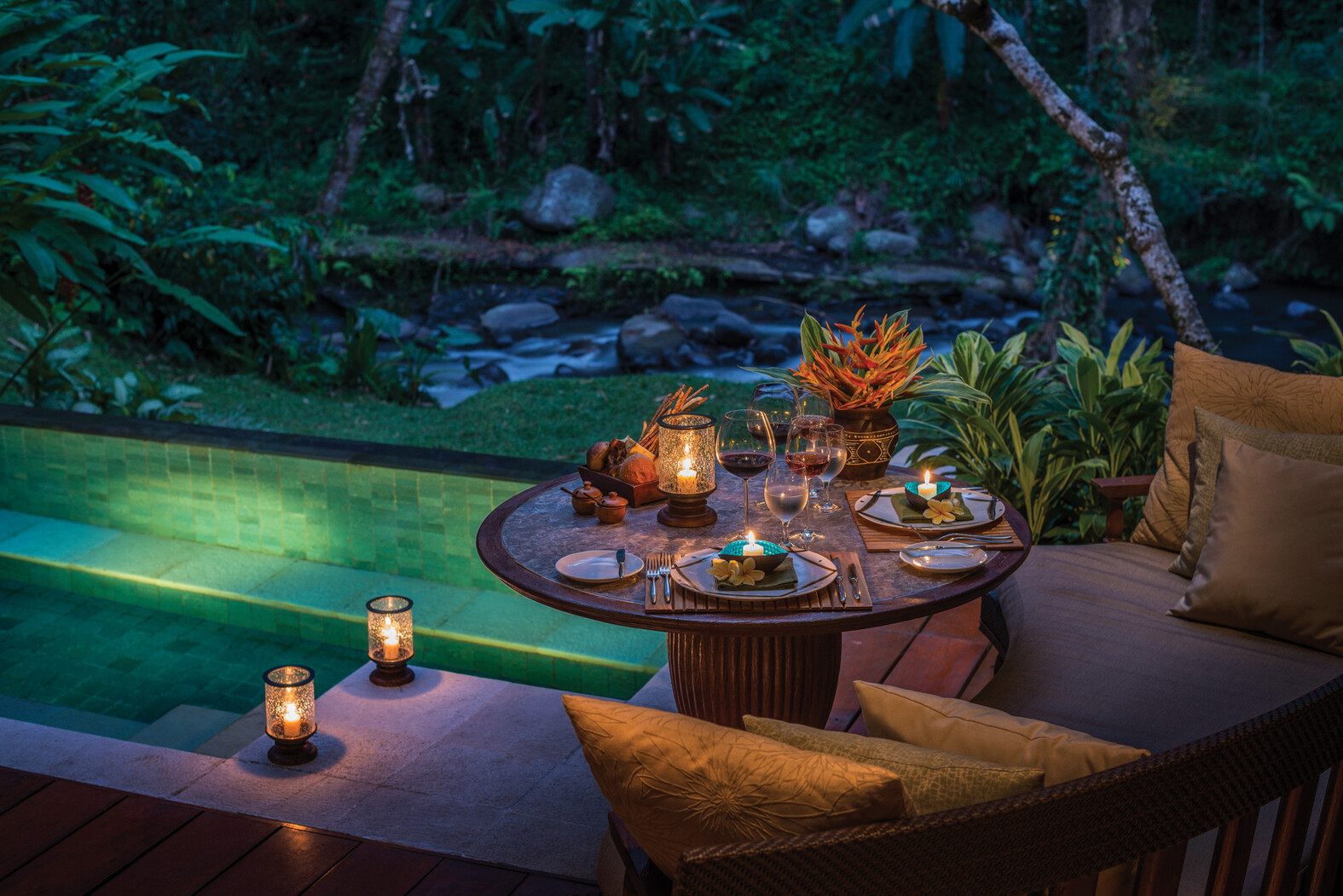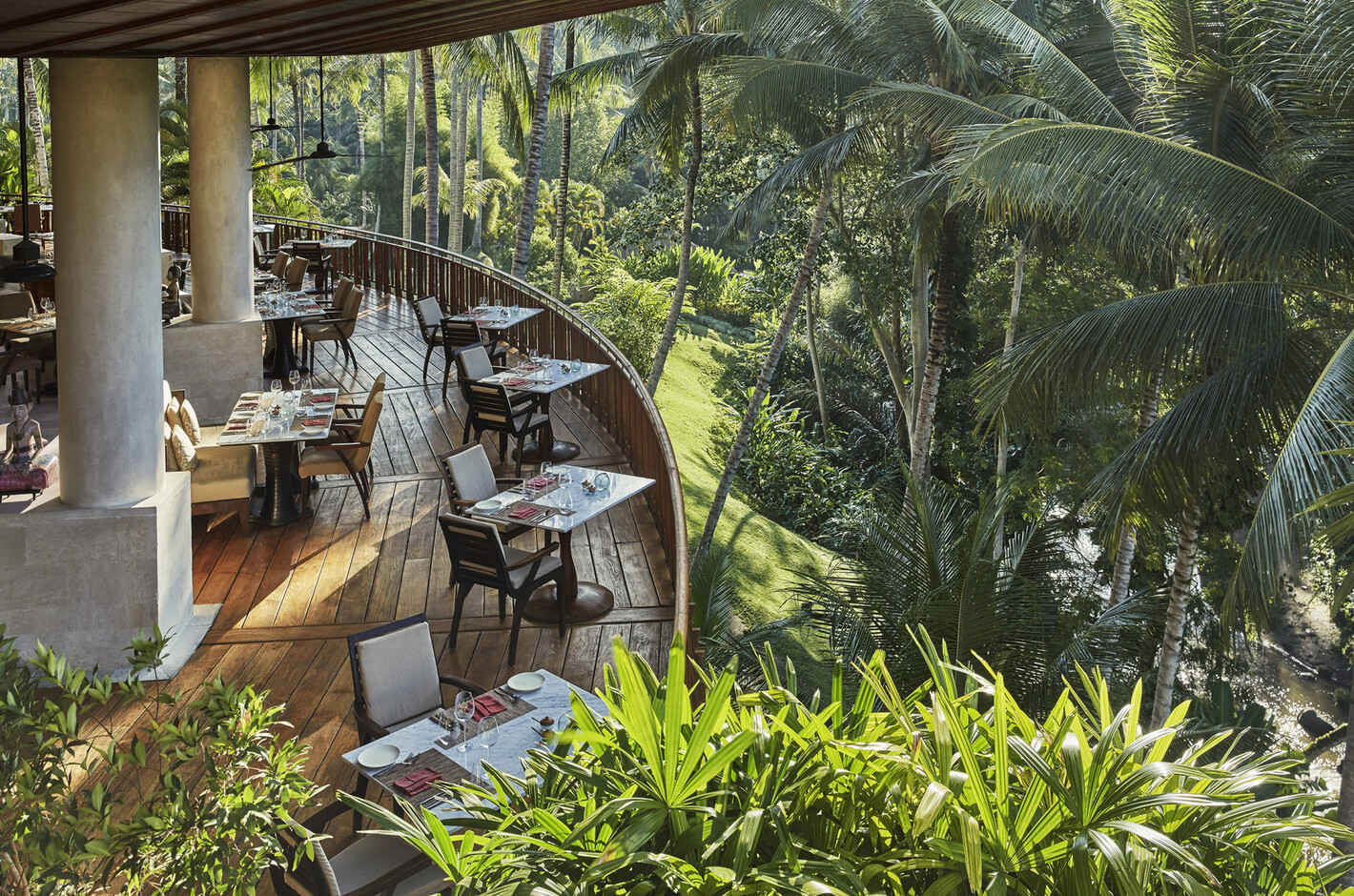 また、レストラン”Ayung Terrace”では美しい渓流に囲まれながらインドネシアの郷土料理、アユン川のほとりにある”Riverside Café”では、地中海料理と食体験も豊富に揃っています。