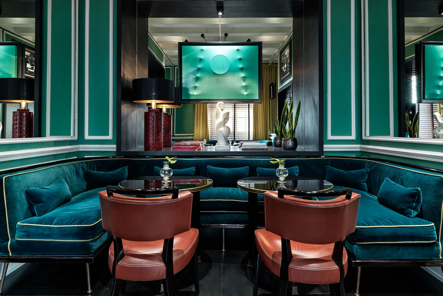 館内は、ローマのカルチャーを取り入れたスタイリッシュな空間が広がり、高い天井や艶やかな大理石の床、重厚な扉に大胆な色使いのソファやミッドセンチュリーの家具が組み合わさり、建築と美を知り尽くしたデザイナー、ミケーレ・ボーナンが生み出した空間は、館内を歩くだけで小さな美術館にいるような充足感を覚えます。