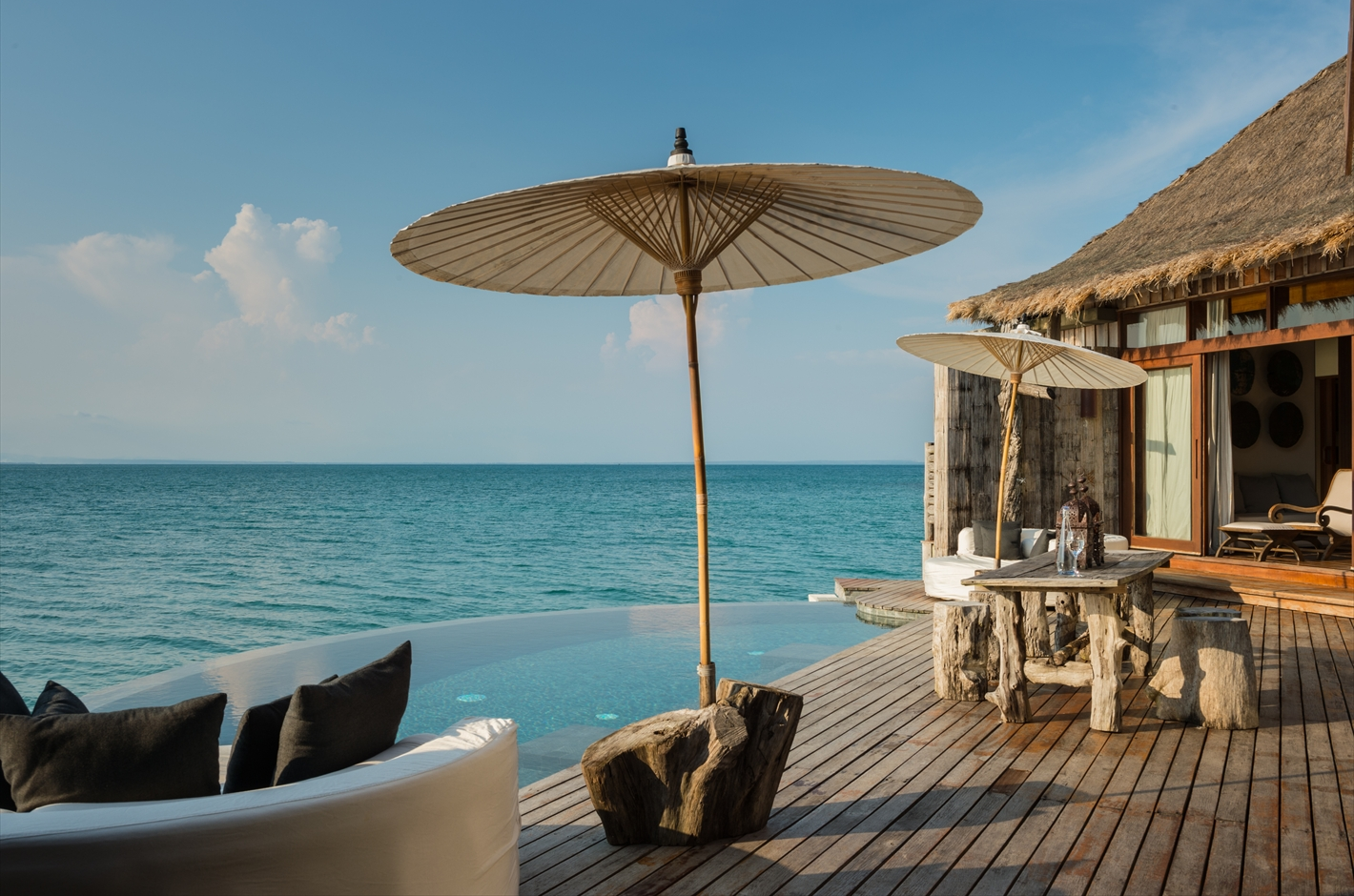 アジアのリゾートでは貴重な水上バンガローを含めた3つのヴィラ