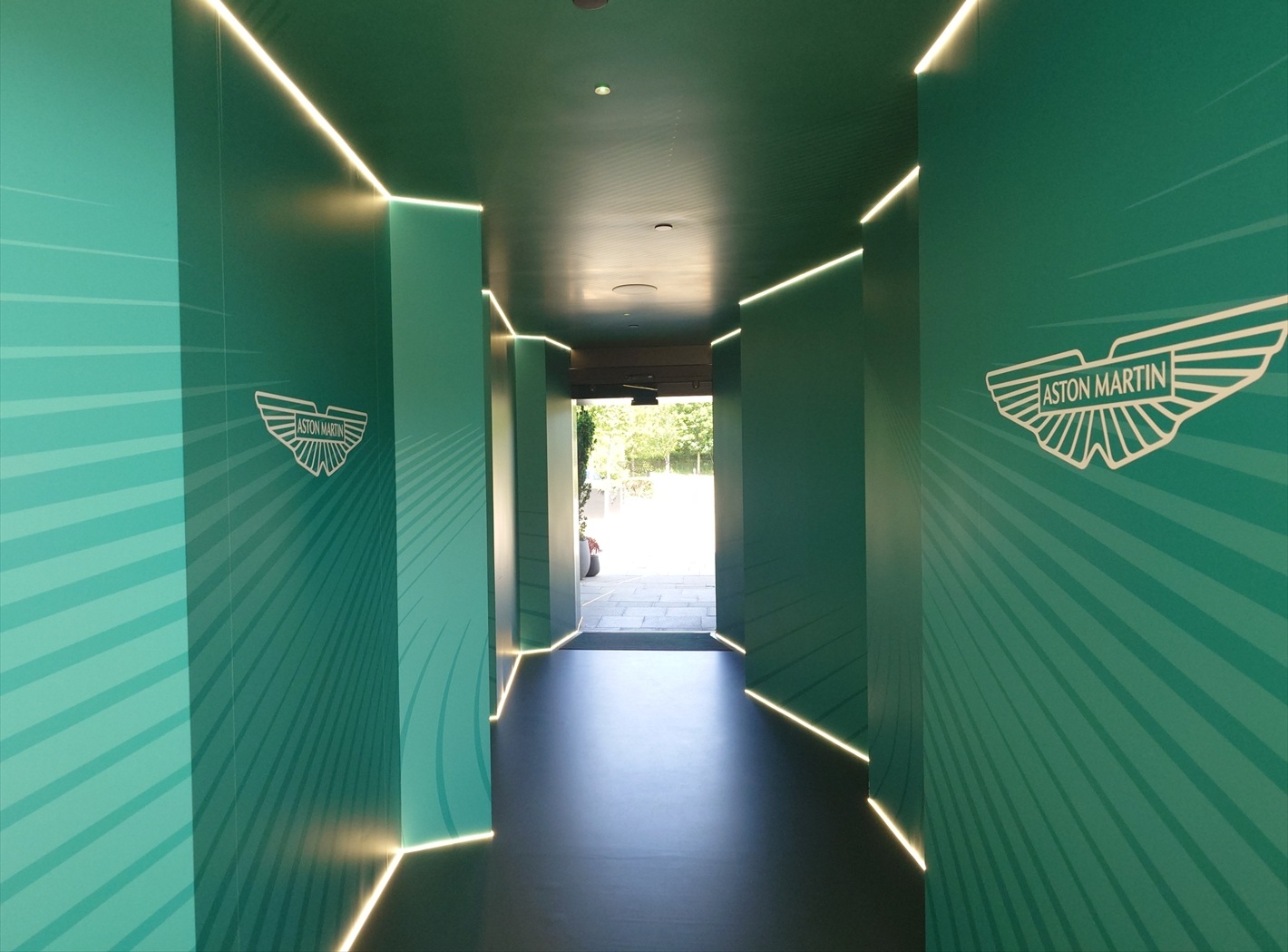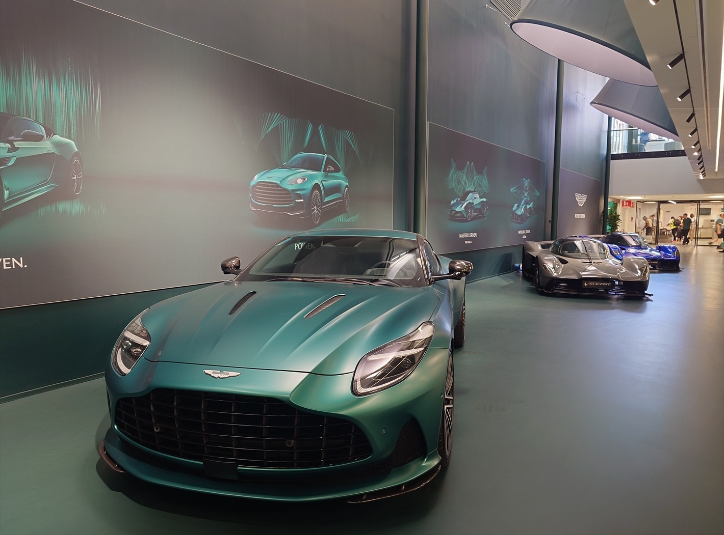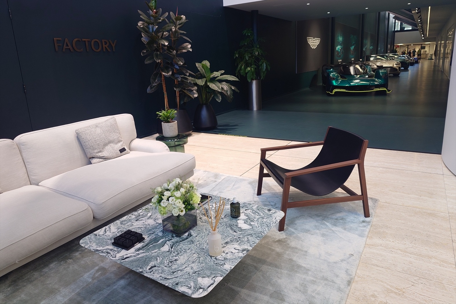 無事ゲートを通過して到着した場所は、一般的な工場のイメージとは遠くかけ離れた、高原に建つ美術館のような芸術的とも言える建造物。エントランスからレセプションへとゲストを導くスターリンググリーンのコリドーは、あの日鈴鹿で見たガレージを彷彿とさせるいかにもアストン マーティンらしい高揚感を掻き立てられるアプローチ。レセプションホールで出迎えてくれたのは、ヴァンキッシュ、ヴァルキリー、ヴァラーの3台と白髪のジェントルマン、ポールだ。