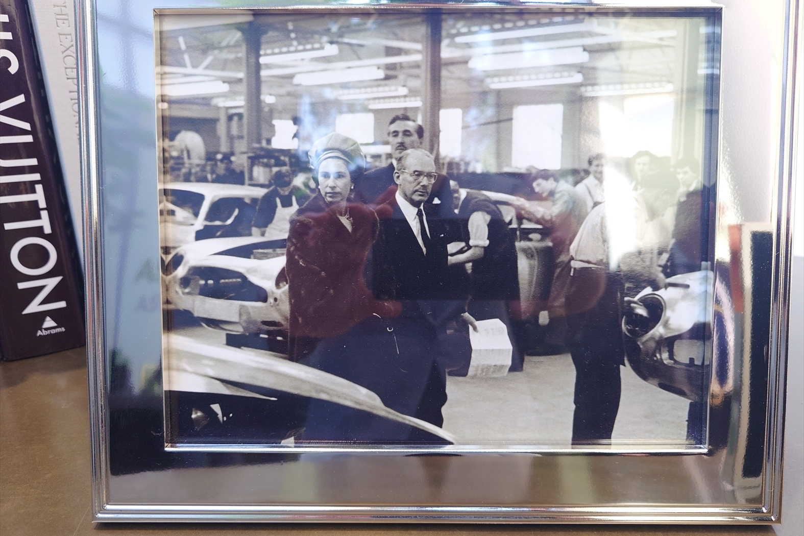 アストン マーティンのファクトリーは、一般見学不可の完全招待制で、訪れた日は唯一のゲストとして迎え入れてくれたのだった。レセプションデスクには、DBシリーズの名前の由来となった有りし日のデイヴィッド・ブラウンが夫人と共に工場を訪ねた時のものと思われる一枚が誇らしげに飾られていた。