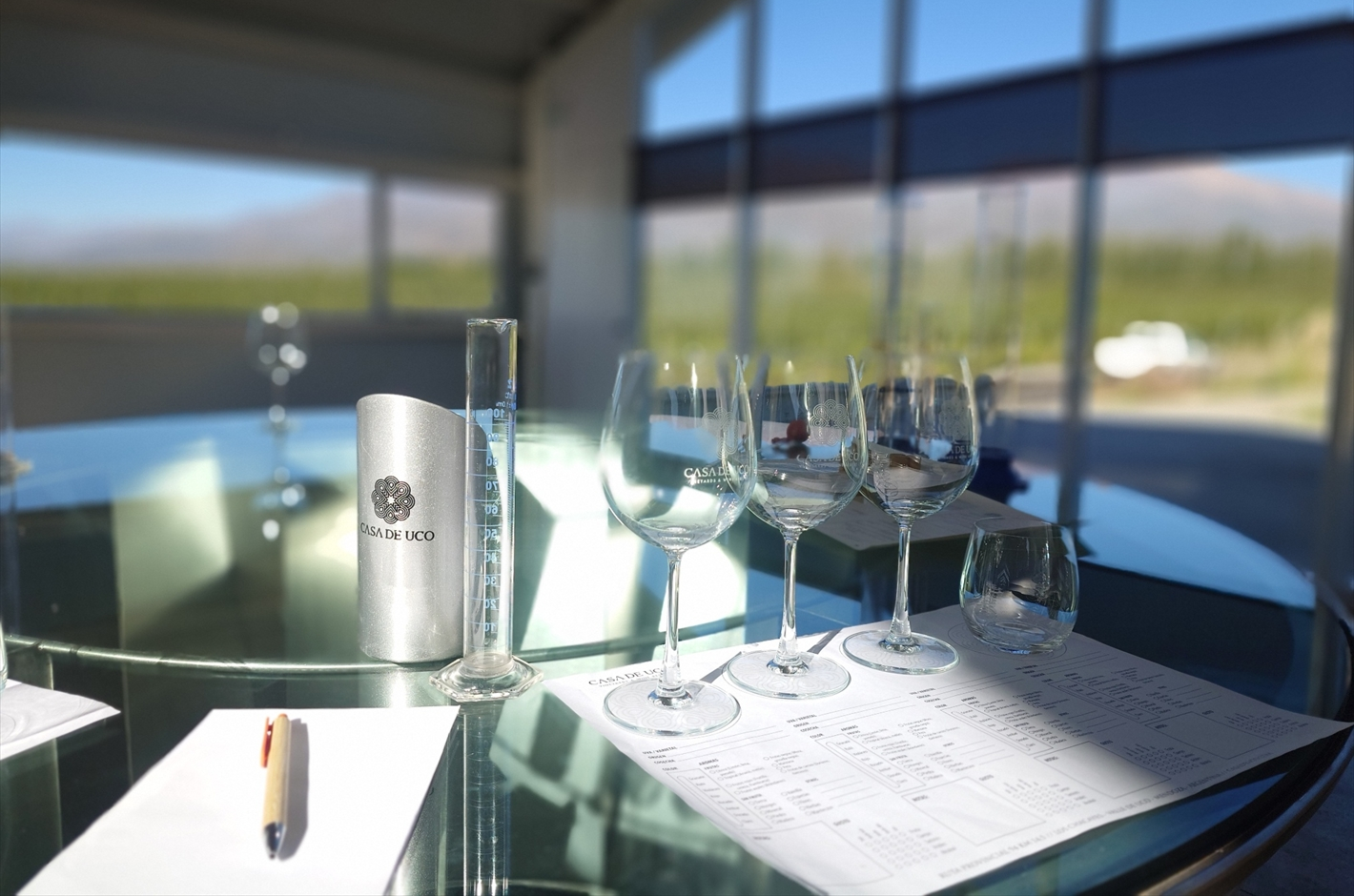 カサ デ ウコに初めて訪れたのは2016年の収穫真っ只中のこの季節だった。スペイン語で”ウコの家”と名付けられた17室のホテルは、周辺の自然環境とも相まって何とも居心地よく感じられた。一年を通じて晴天率がとにかく高く、南アンデスの美しい山並みと見渡す限りの葡萄畑の風景はまるで一枚の絵画のように美しく、わずか3泊の滞在だったにも関わらずたちまち虜となった。