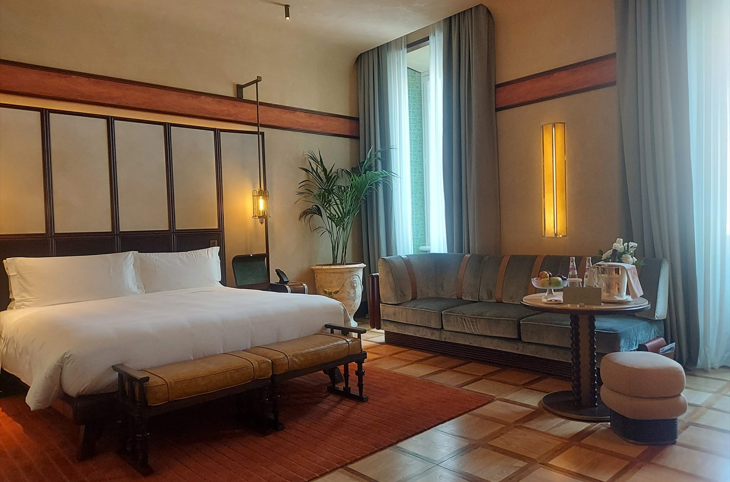 クラッシックなインテリアと最新のテクノロジーが見事に調和し、アメニティの充実度も高く、個人的にはアイロンではなくスチーマーが常備されているのは、ディナーの装いを手短に整えられてありがたかった。もちろん無料のプレスサービスもあるので、ご安心を!