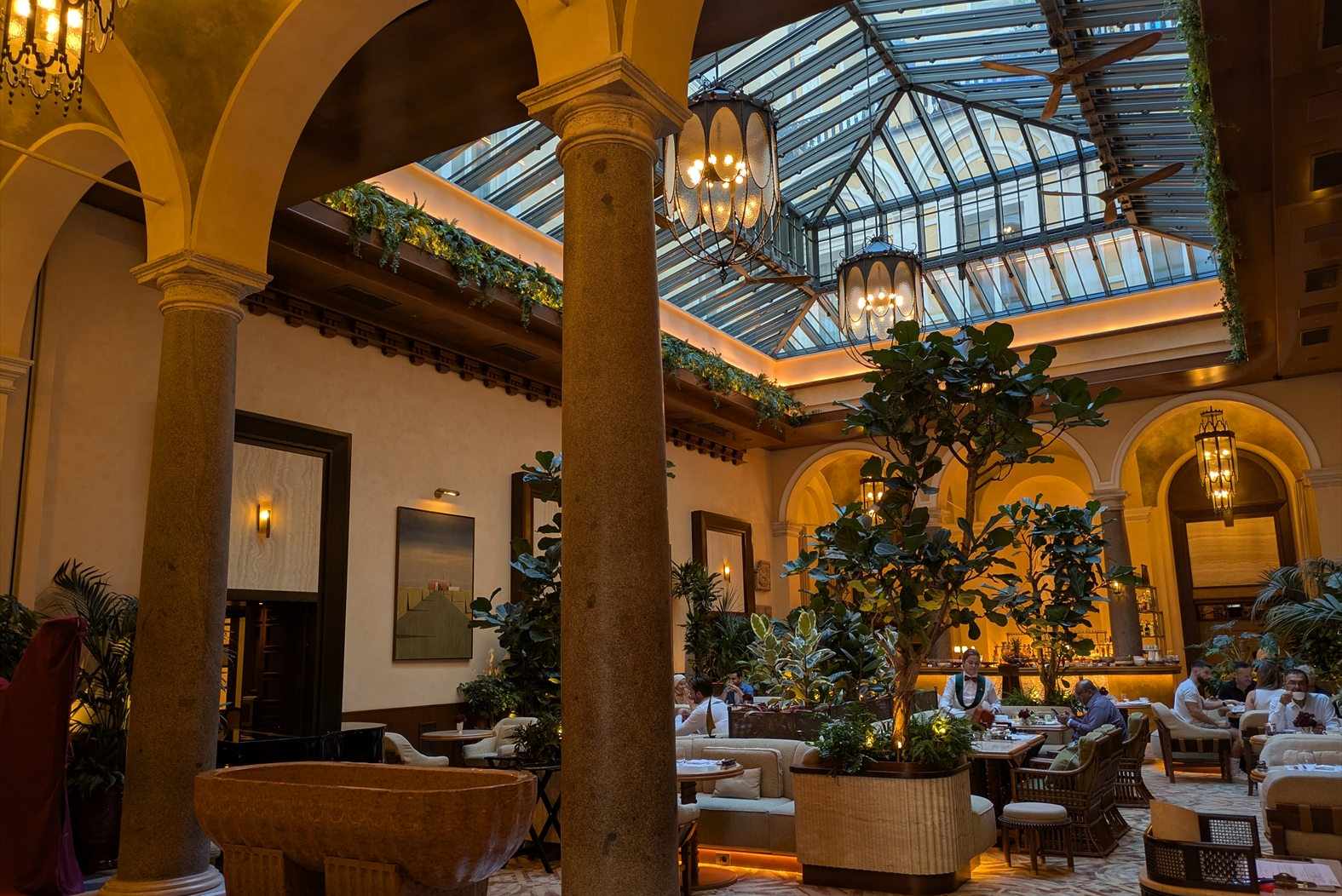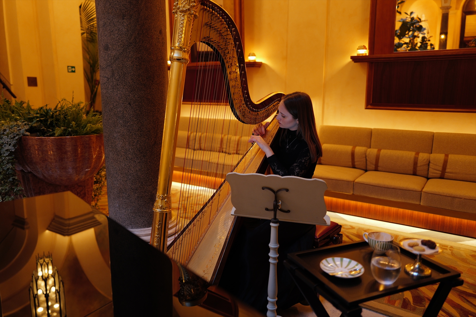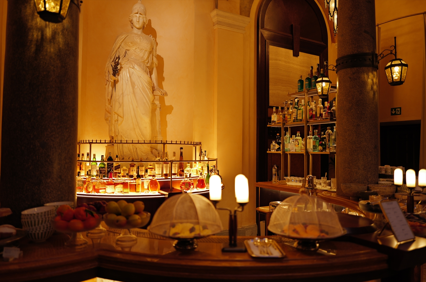 移動の疲れを癒し目覚めた翌朝。ハープの音色が心地よく響くLa Minerva Barで朝食をいただく。この季節、イタリアの夜明けは遅く7時はまだ暗闇に包まれているため、彫刻の厳かさが引き立つラウンジでの朝食は、ローマにいることを実感する時間だった。