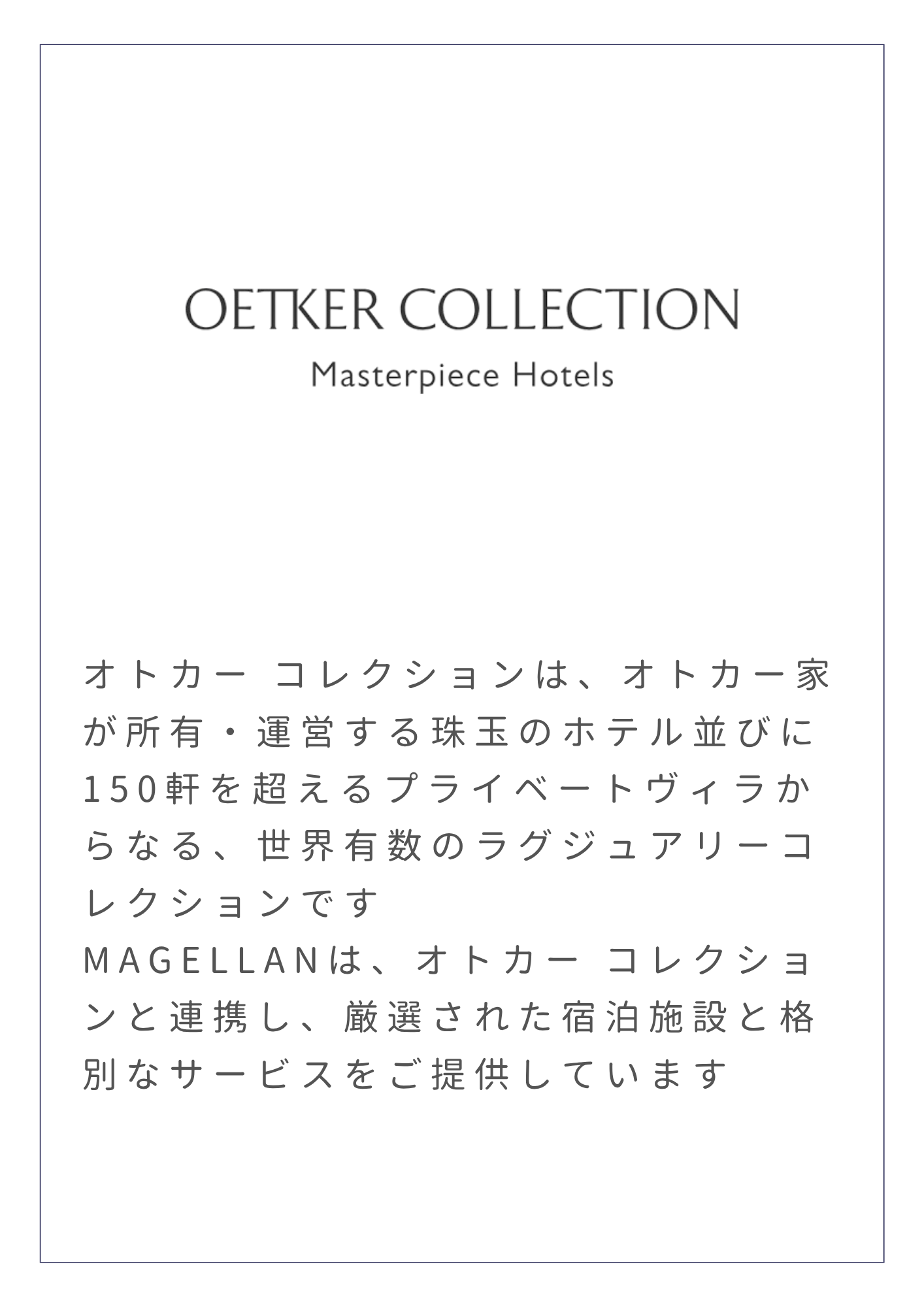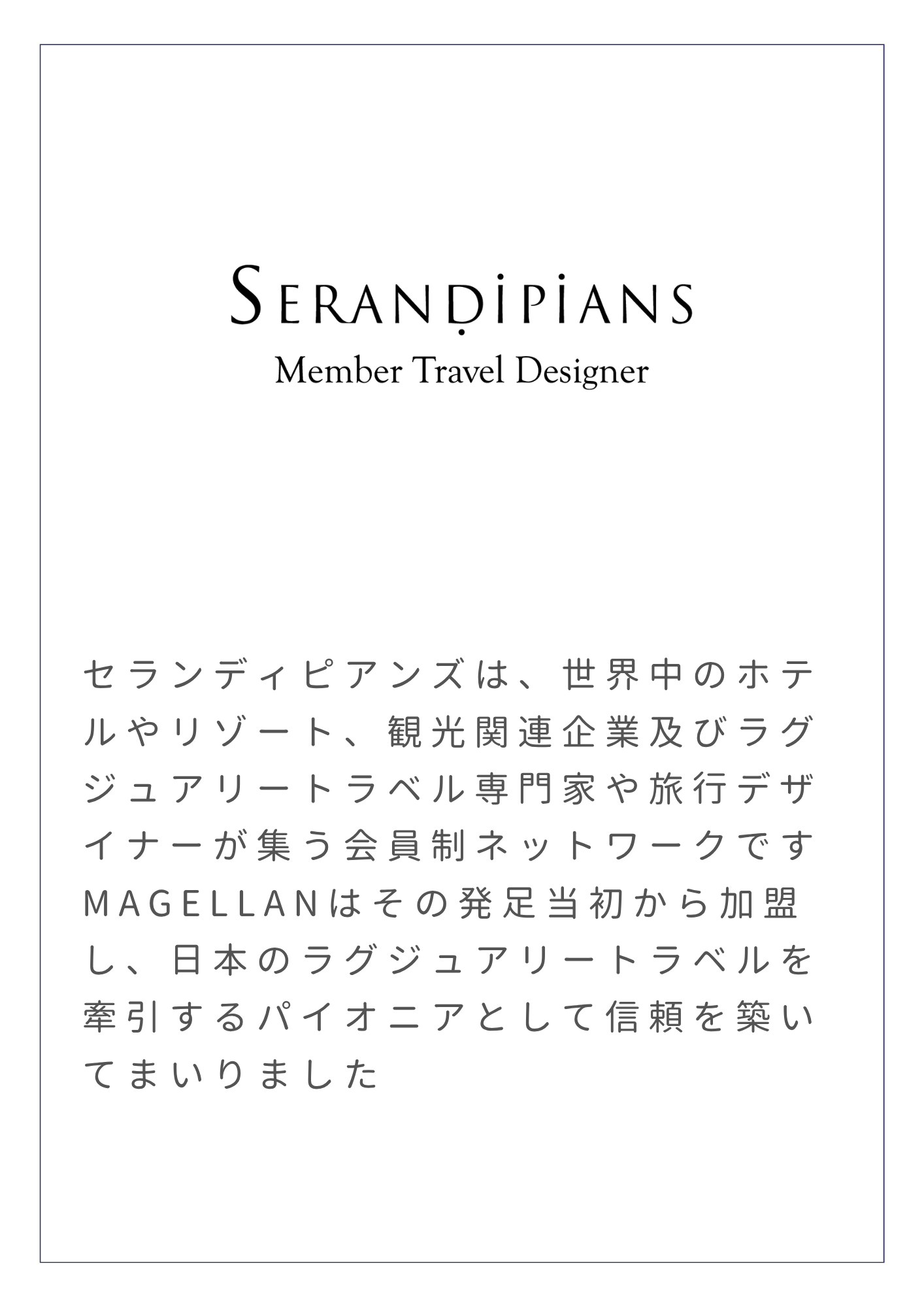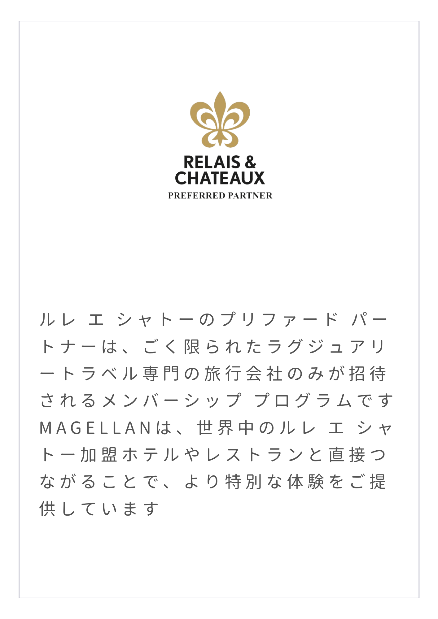 MAGELLANは、創業以来、世界のラグジュアリートラベルに精通したパートナーと強固な信頼関係を築いてまいりました。上質な旅に特化した世界中のパートナーと共に、お客様一人ひとりを洗練された旅へとご案内いたします。