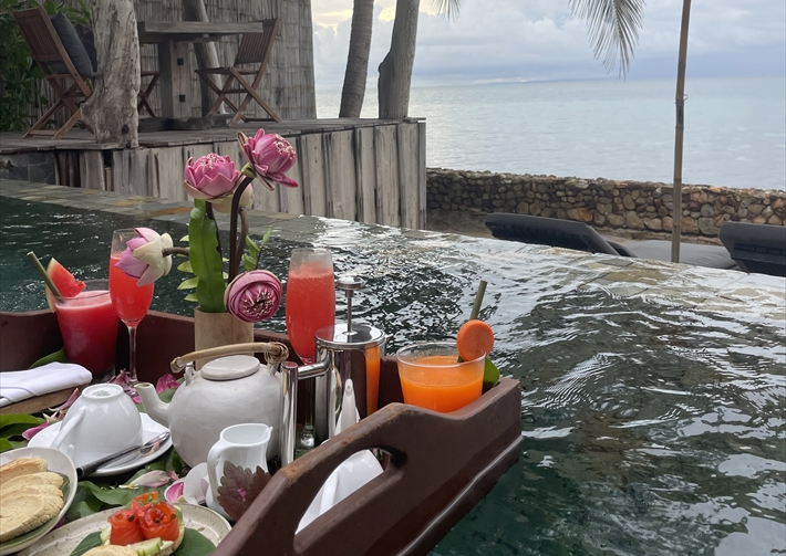 ☆美しい景色とともにフローティング ブレックファーストをおたのしみください