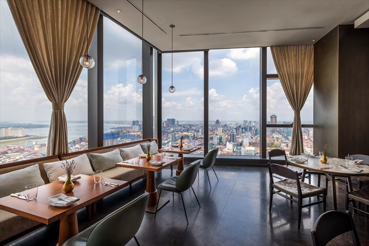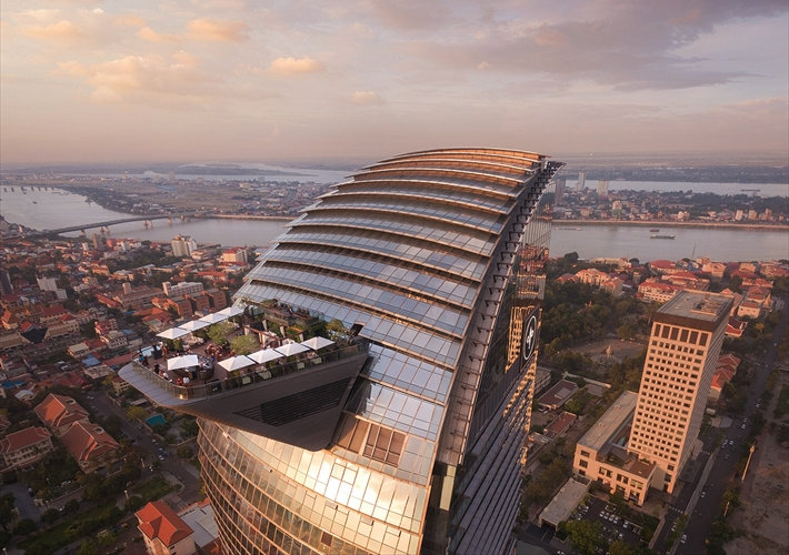 カンボジア / プノンペンプノンペンの中心部に聳える39階建ての高層タワーの上層階14フロアーにある圧巻のパノラマビューを誇るホテル。